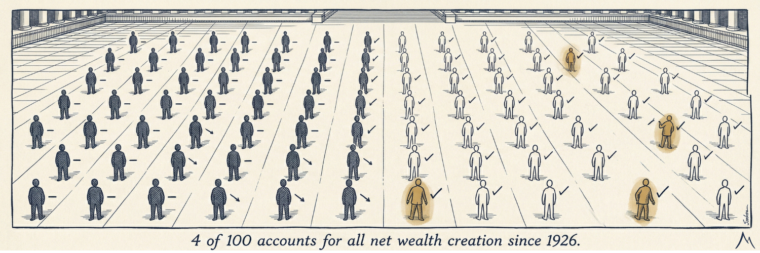 Bessembinder found that just 4% of listed U.S. companies account for all net wealth creation since 1926. The other 96% collectively matched the return of cash sitting in a bank account.
