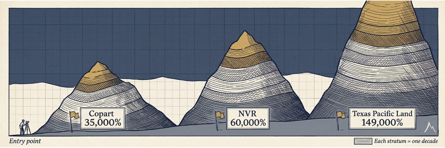The Legacy Asset Compounders: Texas Pacific Land transformed from worthless desert into a royalty machine delivering a 149,000% return.
